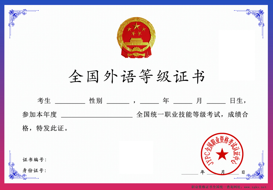 全国英语等级证书样本